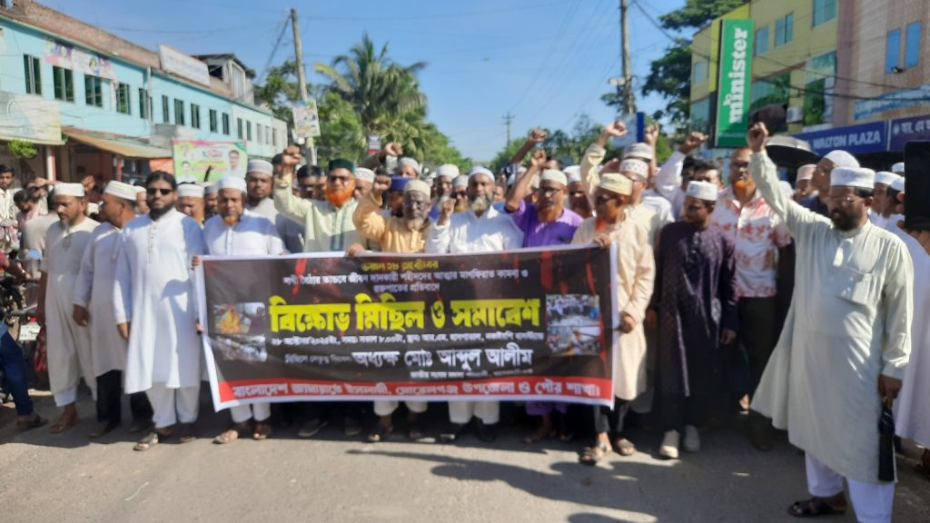 বাগেরহাটের মোরেলগঞ্জ উপজেলা ও পৌর জামায়াতে’র উদ্যোগে এক বিক্ষোভ মিছিল ও সমাবেশ অনুষ্ঠিত হয়েছে।