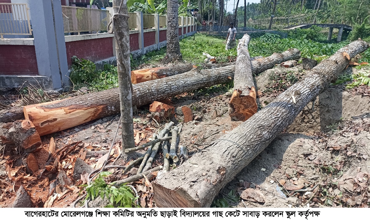 কর্মকর্তাদের অনুমতি ছাড়াই মোরেলগঞ্জে একটি বিদ্যালয়ের গাছ কেটে সাবাড়
